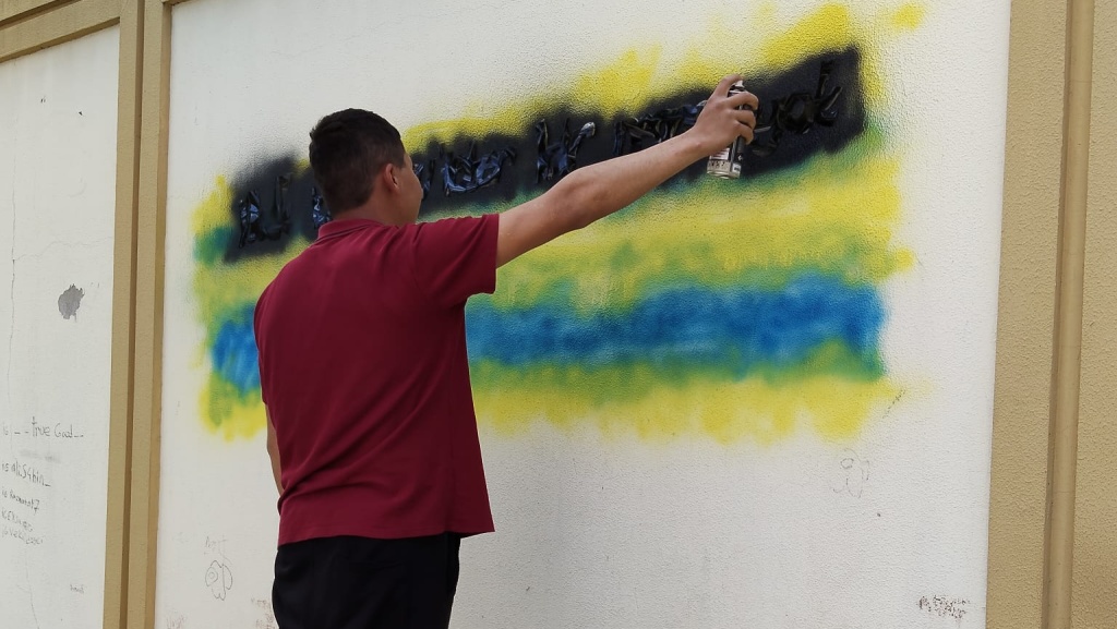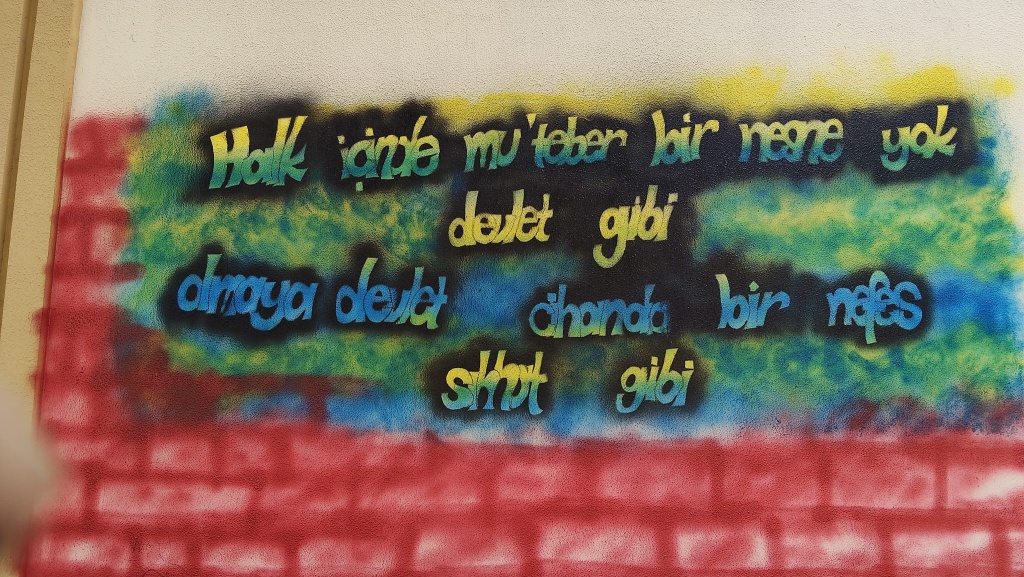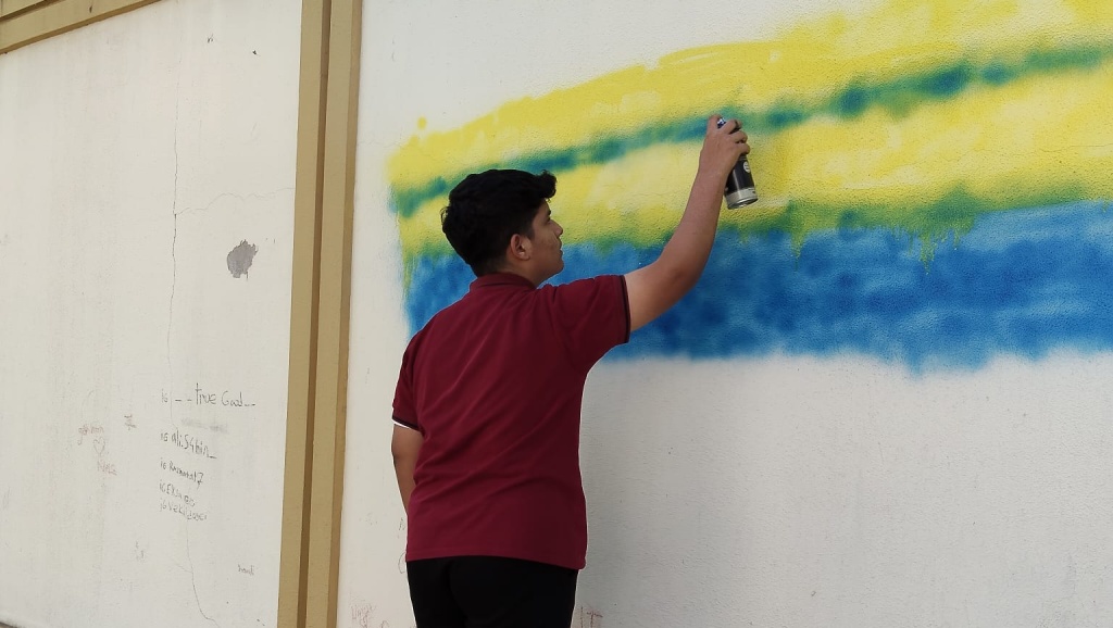 Öğrencilerimiz "Dilimizin Zenginlikleri" Projesi kapsamında "Beyitlerle Grafiti" konulu çalışmada, okulumuzun spor salonu duvarına Resim iş Öğretmeni Nurgül Aslan rehberliğinde grafiti yapmışlardır.